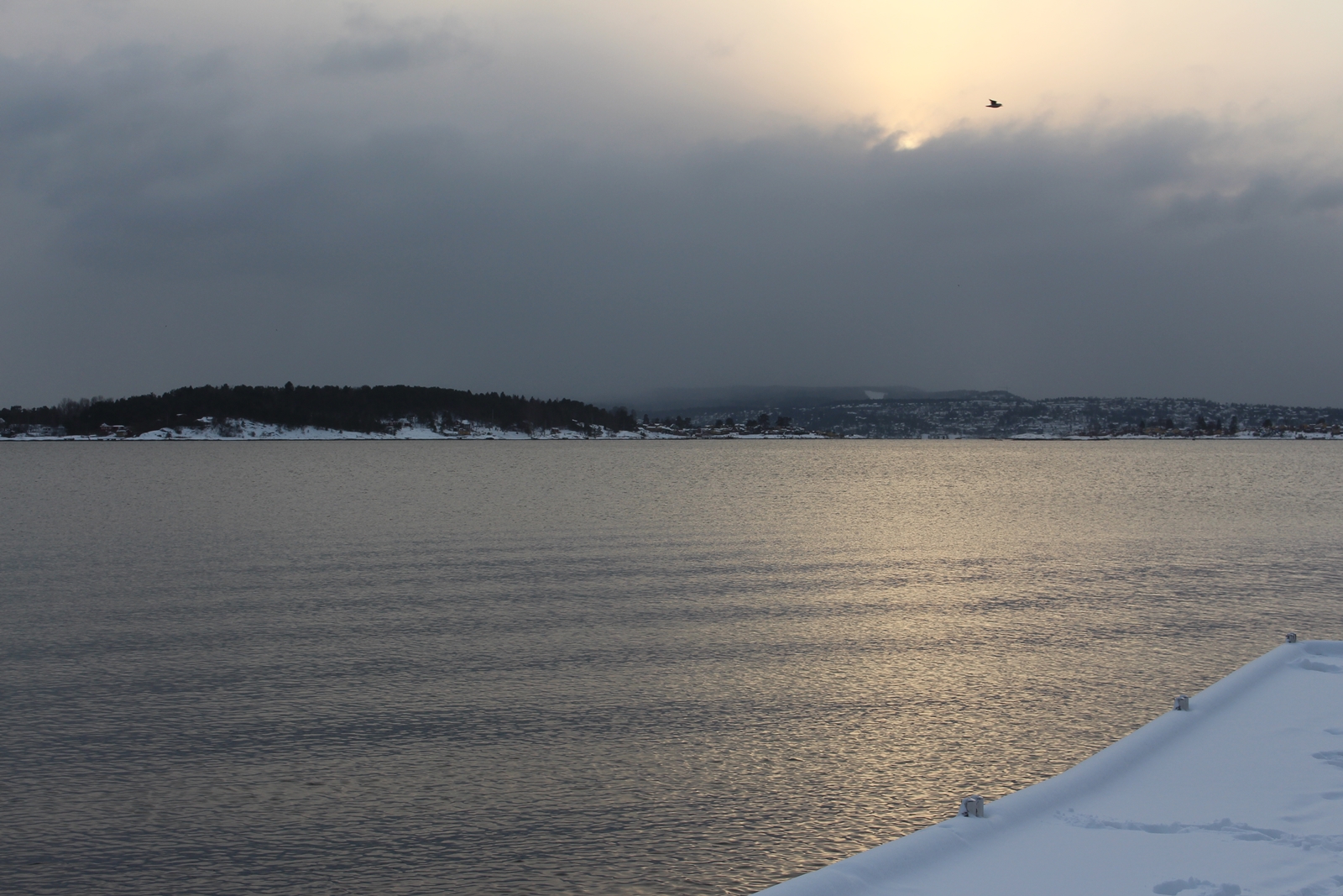 Die „Diebesinsel“ wie Tjuvholmen wörtlich übersetzt heißt, beschert einem den Blick über den futuristischen Bau des Astrup-Fearnley-Museums, über die im Sommer frequentierten Badestege des Stadtteils bis hin zur Museumshalbsinsel Bygdøy, jetzt im Winter liegt alles unter einer friedlichen Zuckerhaube aus Schnee, was den Anblick jedoch nicht minder schön macht. Im Gegenteil: ich finde gerade jetzt kann man hier den Alltagsstress perfekt hinter sich lassen und einfach Norwegen-Feeling genießen. Bei lauter Verzückung sollte man nur aufpassen, dass man auf den ungesicherten Bootsstegen nicht einen Schritt zuviel macht und ein unvorhergesehenes Eisbad nimmt. 😉