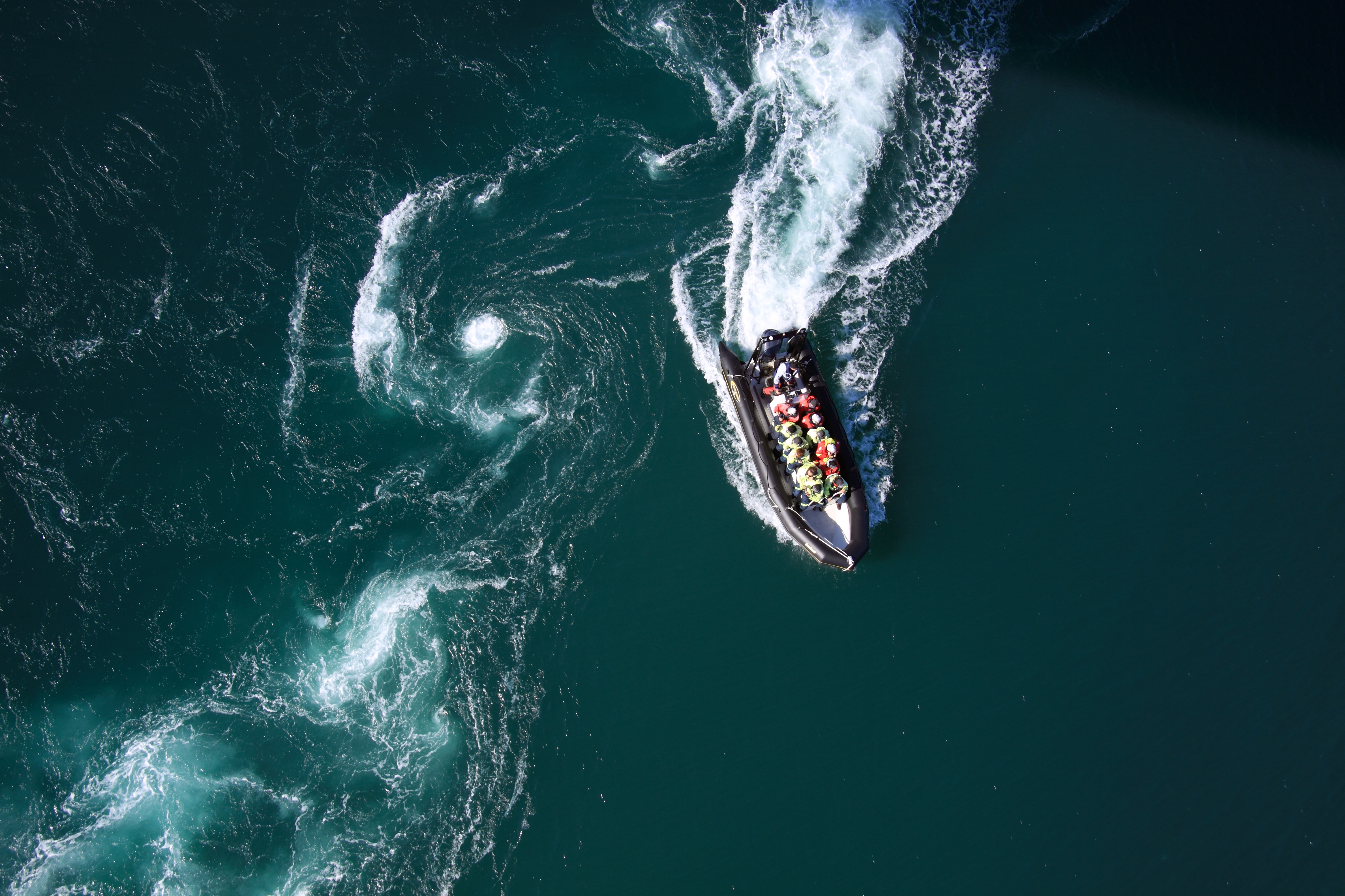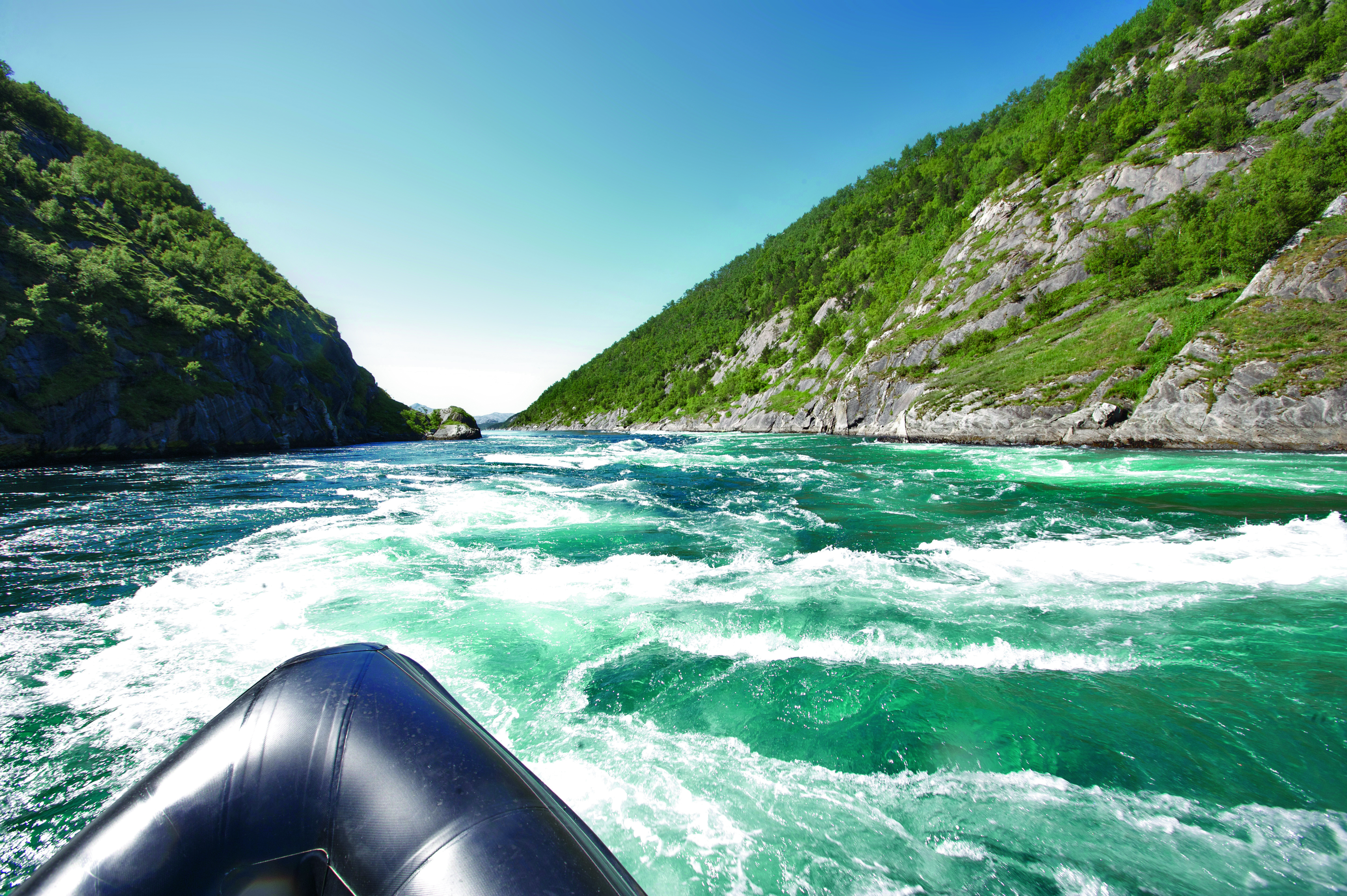 Nach einigen Häfen, die man genüsslich in der Nacht verschläft, erreicht das Schiff am 4. Tag Bodø. Ich persönlich favorisiere den Ausflug zum Saltstraumen, schließlich ist man nicht jeden Tag an so einem gewaltigen Gezeitenstrom. Im Winter gewinnt der, der die superwarme Jacke im Gepäck hat, denn hier weht zu dem reißenden Strom ein Wind, dass es einem die Haare vom Kopf weht. Powered by Nature eben. Wer sich vom Schnee, der einem wie kleine Messer ins Gesicht schneidet, nicht beeindrucken lässt, genießt den Ausblick auf die Strömung gleich unter Brücke, die über den Saltstraumen führt. Die Angelfreunde, die hier sonst zahlreich anzutreffen sind, halten sich bei diesem Wetter eher mit ihrer Anwesenheit zurück. Wahrscheinlich verharren die Fische sowieso irgendwo im „Winterschlaf“. 😉
