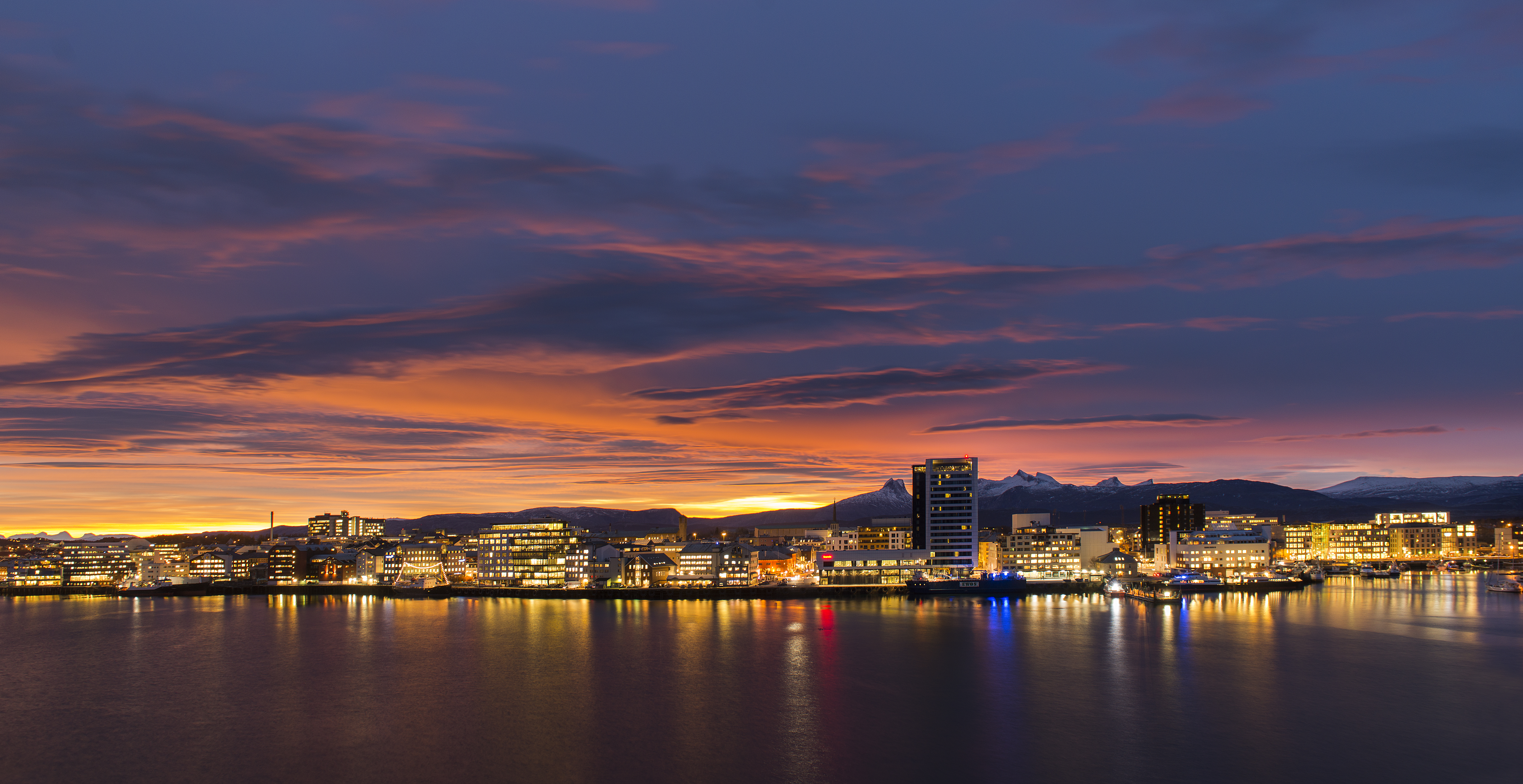 Um 15 Uhr geht es weiter. Nach Molde. Hier bleibt man meist ein „An-Deck-Steher“, da das Schiff nur dreißig Minuten am Kai liegt. Dafür hat man einen herrlichen Blick auf das Scandic Seilet Hotel, in der Bauweise ein bißchen in Dubai abgeguckt. Gebaut wie ein Segel und so. Und das Lichtermeer der Häuschen von Molde kann sich auch sehen lassen, auch wenn man die Romsdalsalpen im Winter nur erahnen kann. Am Abend läuft man in Kristiansund ein. Für mich eine der schönsten Hafeneinfahrten überhaupt. Auch im Winter oder vielleicht gerade da. Die Lichter kommen immer näher, das Schiff zieht vorbei an Häusern und Hafengeschehen. Herrlich! Den arktischen Wind muss man eben einfach ertragen.